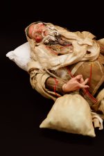 Testa in terracotta, occhi in cristallo, dipinta a olio mani e piedi in legno, corpo in stoppa e abiti in seta di San Leucio.