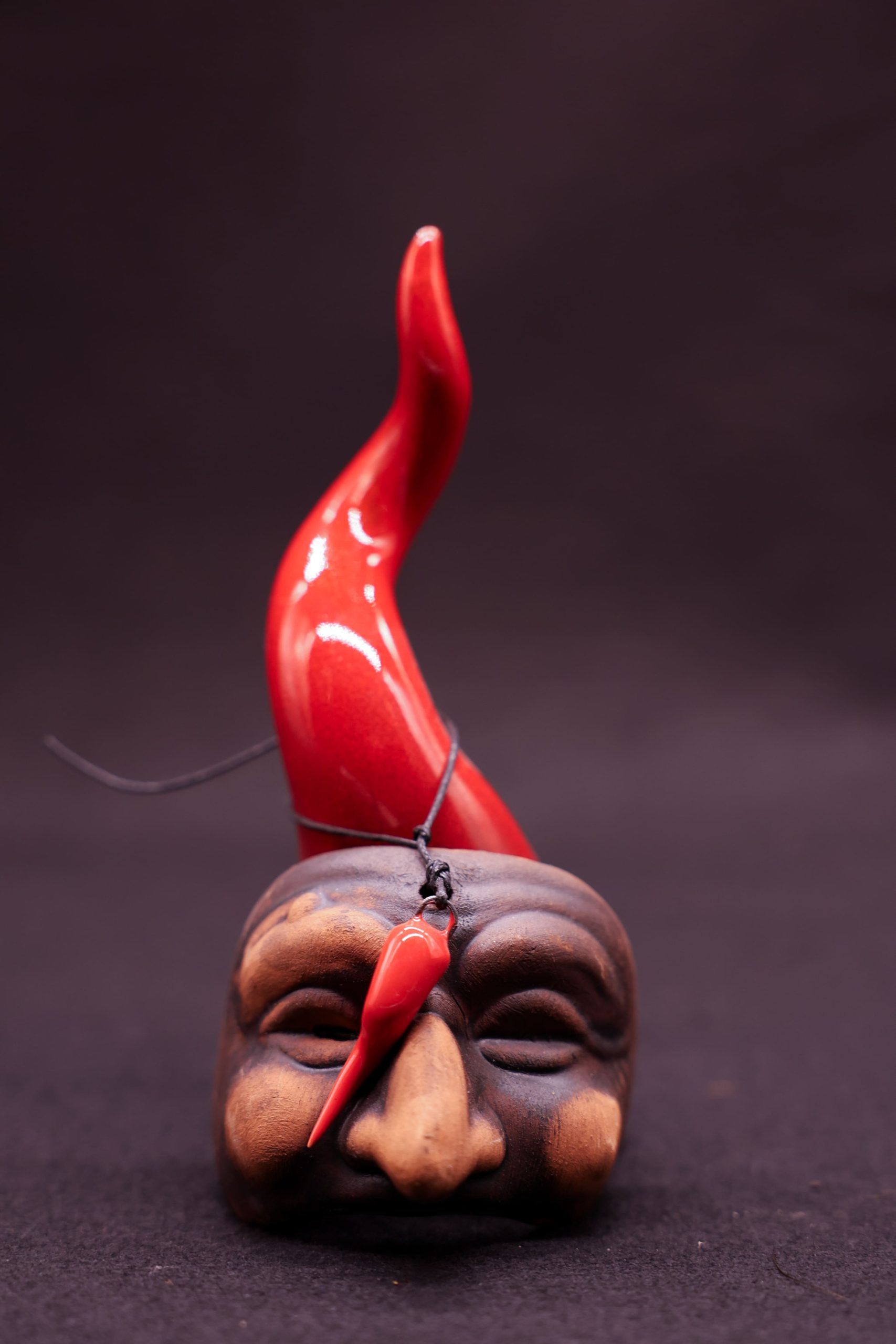 Corno rosso con maschera di pulcinella e mini corno – 25cm